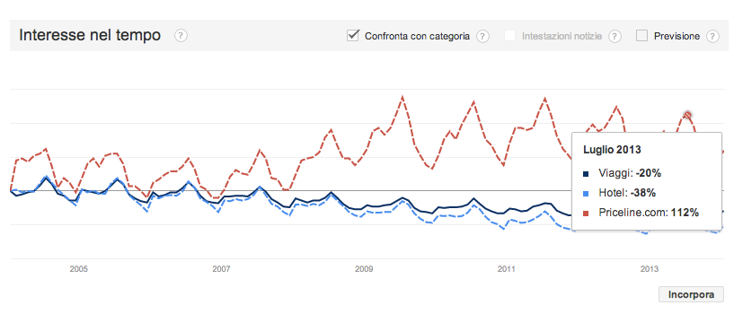 a fronte di una maggiore crescita di ricerche per siti di prenotazione on line (luglio 2013).